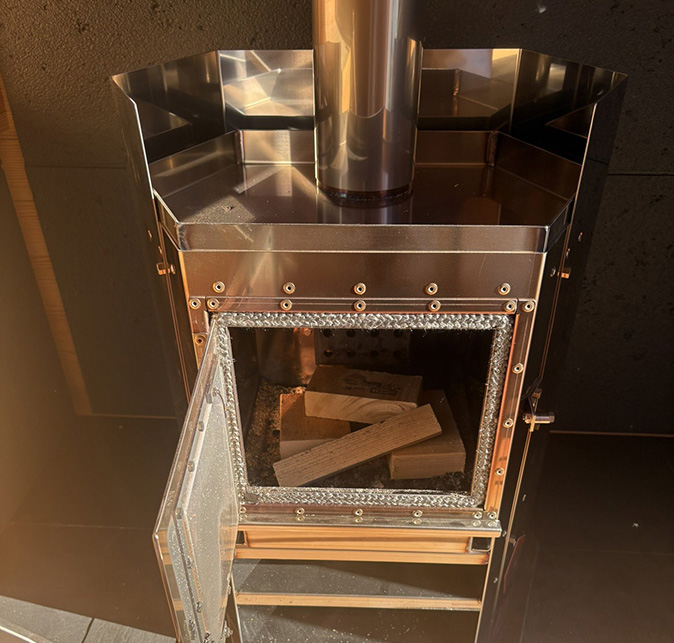 「電気ストーブ」のサウナを導入される自宅サウナ施工事業者さんが多い中、当社は薪ストーブの導入に対応しています。薪に着火し、木の香りやゆらぐ炎、高まりゆく熱を五感で味わう瞬間は、日々の暮らしの中で大切な自分だけの時間になります。